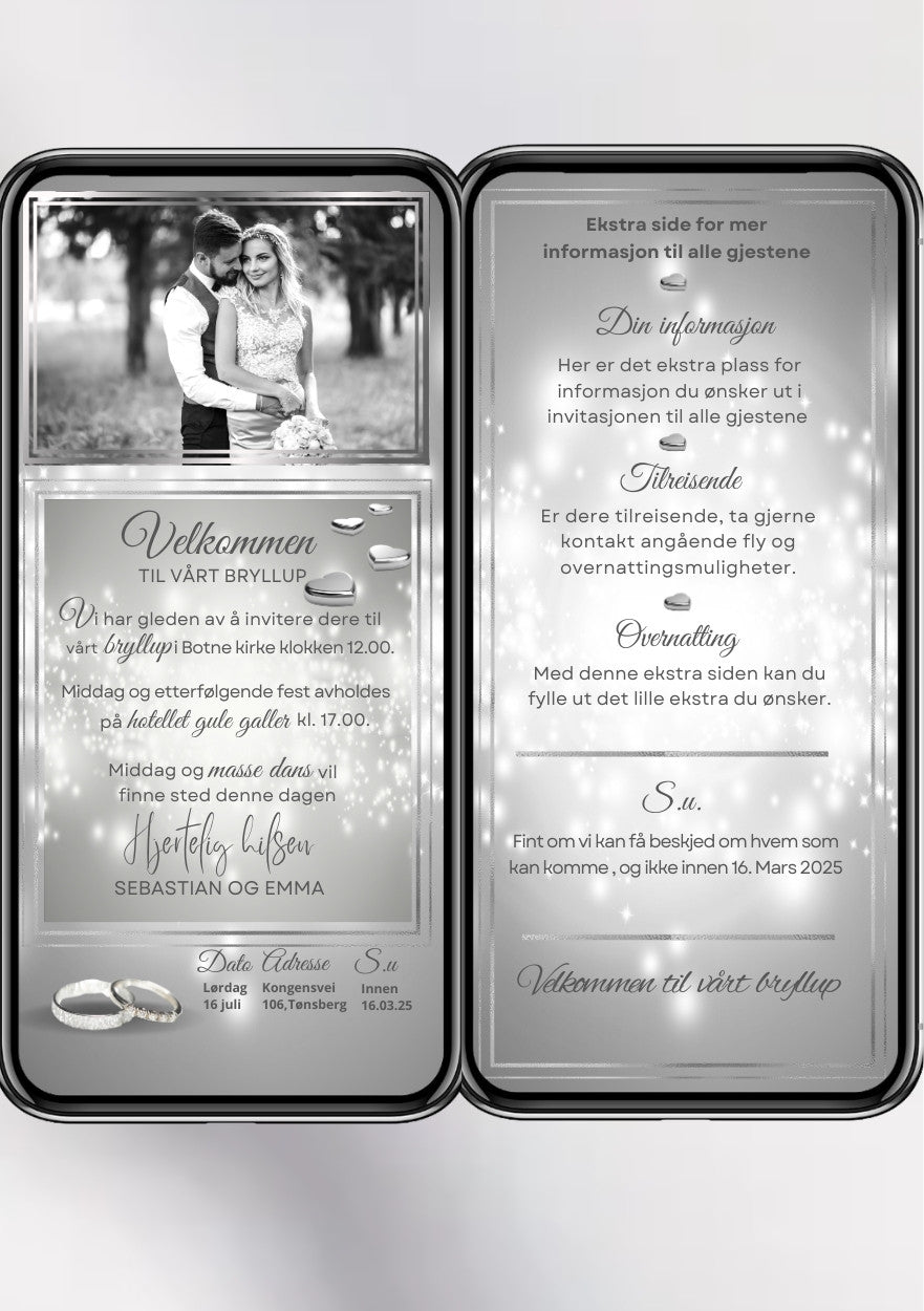 - Invitasjon i valgt størrelse, tekst, design og eget bilde.