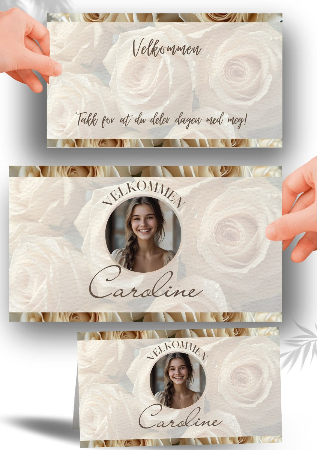 - Bordkort i valgt størrelse, tekst og design.