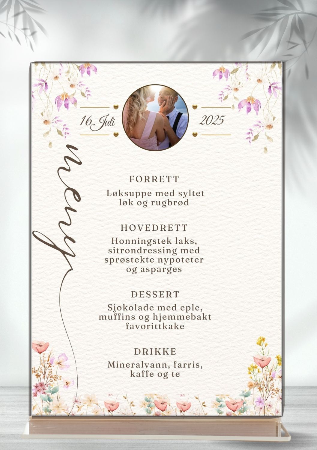 - Meny i valgt størrelse, tekst og design.