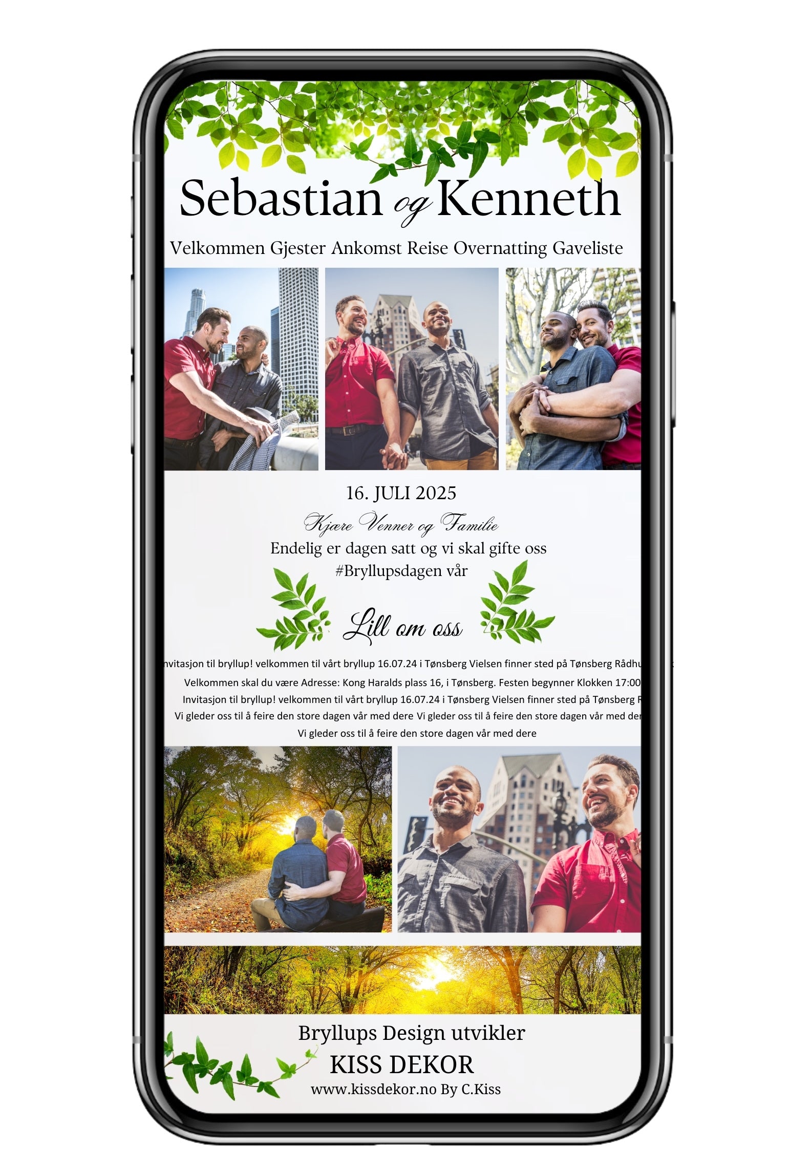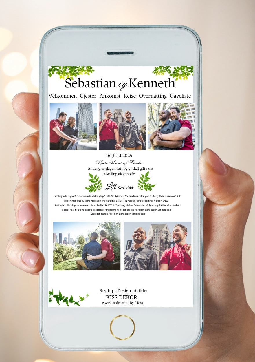 Send enkelt ut bryllupsinformasjon til gjestene med lenker til det dere ønsker å dele, som bryllupsnettside, gaveliste, kart til bryllupssted (Google Maps), overnatting og annen nyttig informasjon.