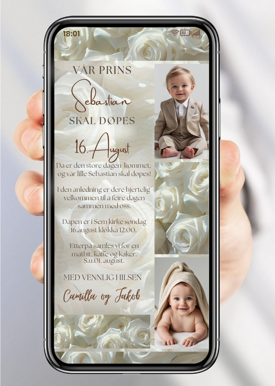 - Invitasjon i valgt størrelse og design med egen tekst og bilde.