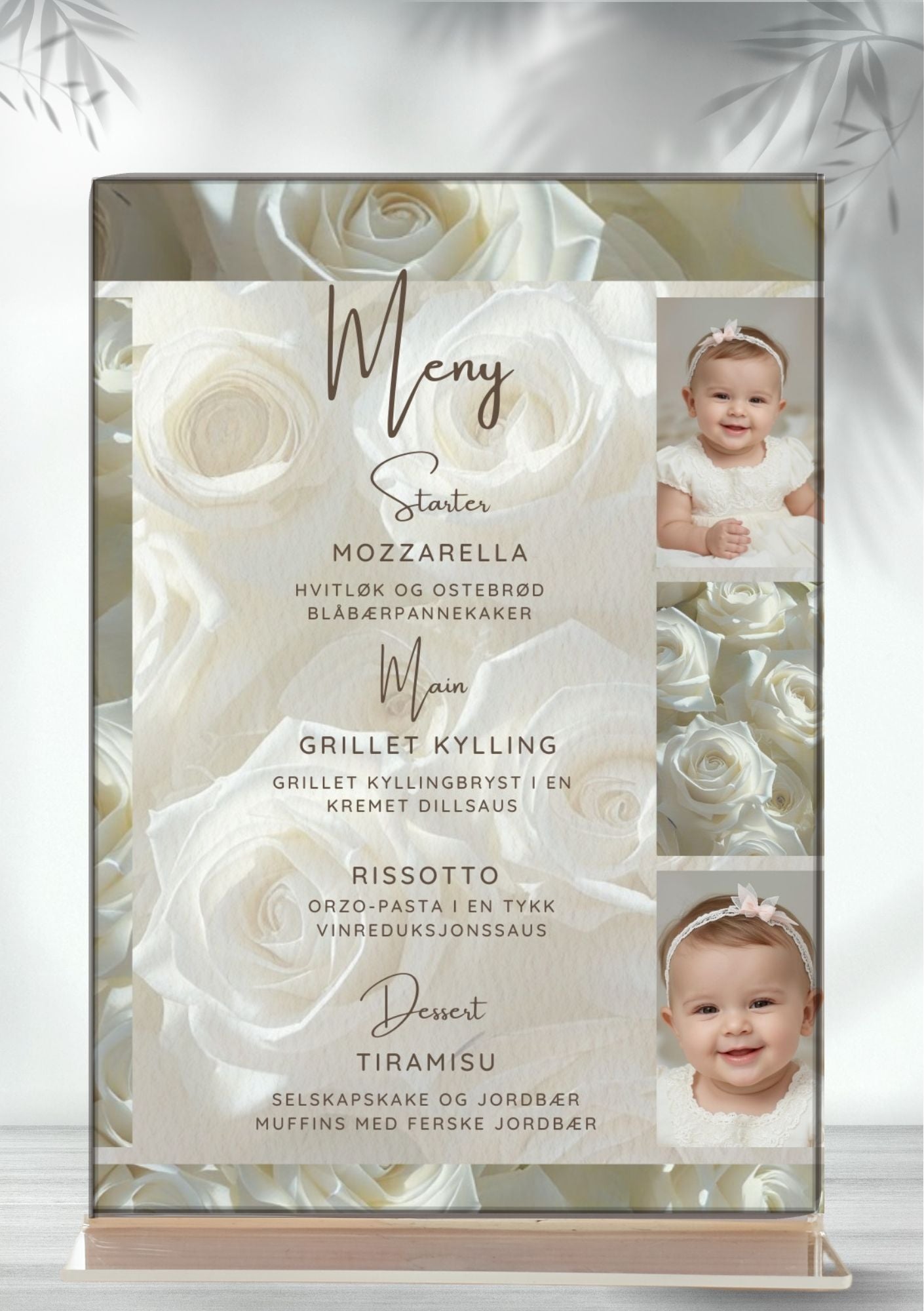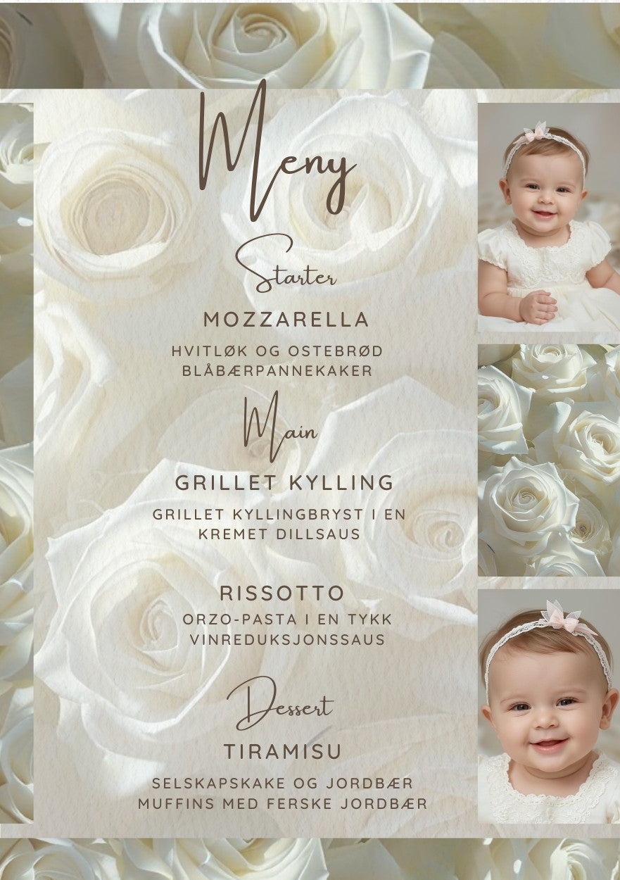 Menyen tilpasses til ditt arrangement om det er bryllup, dåp, konfirmasjon eller andre begivenheter.