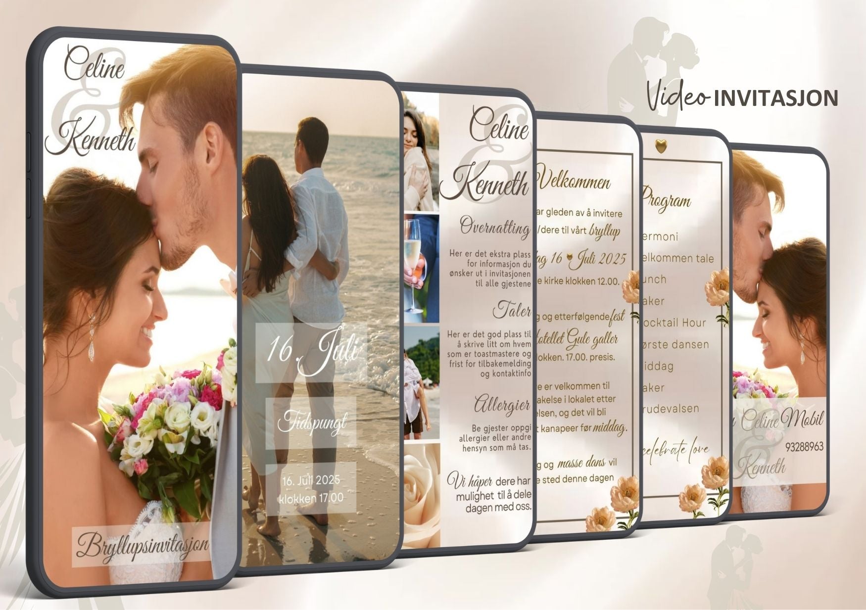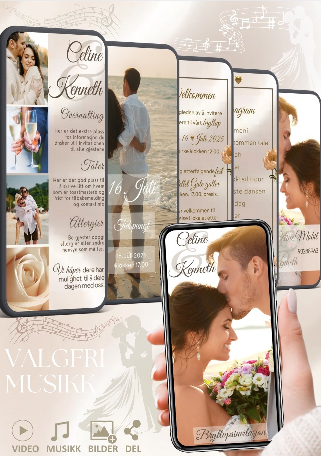 - Videoinvitasjon du kan sende rett til alle gjestenes mobil.