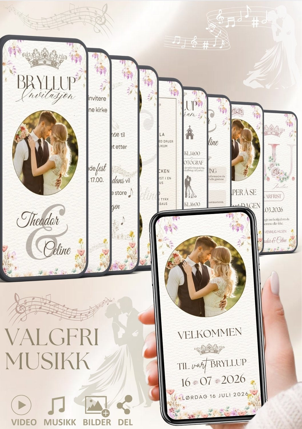 - Videoinvitasjonen inkluderer 1 video fil med musikk (10 sider)