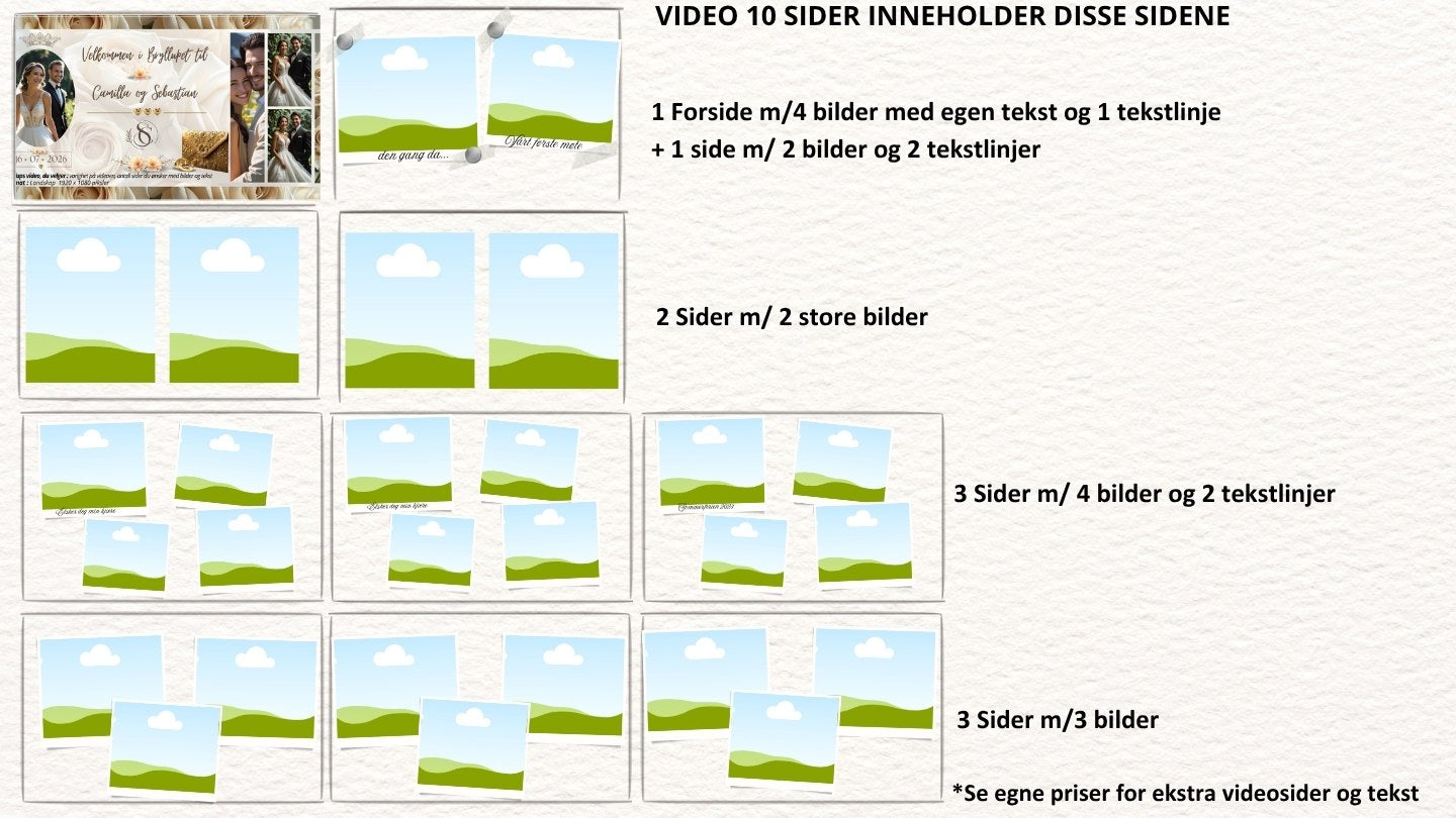 - Valgt video med 10 sider i ønsket lengde med dine bilder og tekst